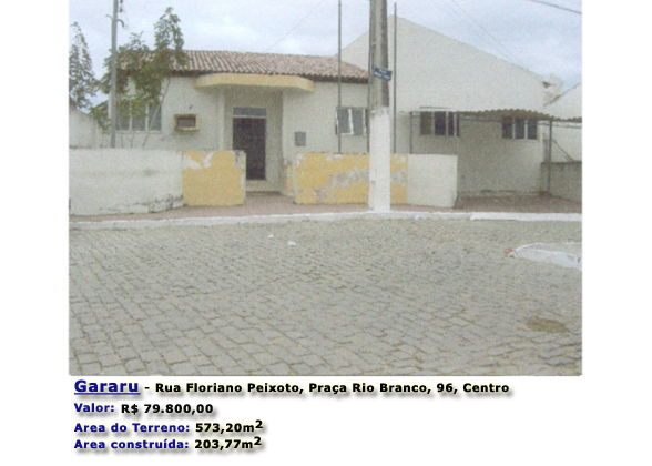 3-Rua Floriano Peixoto, Pça Rio Branco, nº96 Centro- GARARU/SE;