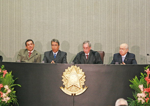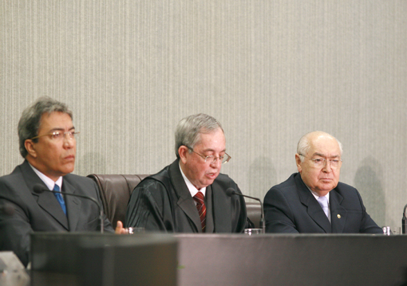 O Desembargador Cláudio Déda tomou posse, no início da noite de hoje, dia 14, na Presidência do Tribunal Regional Eleitoral (TRE/SE). A solenidade aconteceu no Plenário do TRE e contou com a presença do Governador do Estado, Marcelo Déda, do Presidente do TJSE, Desembargador Artêmio Barreto, da Vice, Desembargadora Célia Pinheiro, demais Desembargadores, Juizes, deputados, vereadores, familiares e amigos.