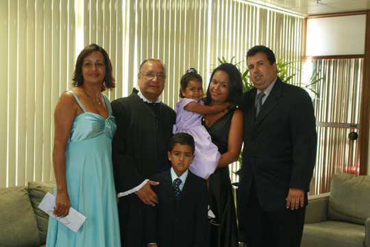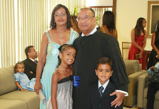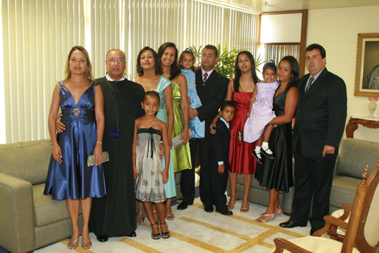 À comunidade da Paróquia Sagrado Coração de Jesus, representada aqui por muitos amigos e irmãos, à qual estou integrado há mais de trinta anos, ininterruptamente, a minha demonstração pública de entrosamento e crescimento espiritual. Sei que a Comunidade sempre rezou comigo e rezou por mim, nos momentos em que mais necessitei e alegrou-se comigo nos momentos de júbilo. Vejam senhores como são as coisas do destino. Fui escolhido para compor o Tribunal de Justiça no dia 16 de Janeiro de 2008. No dia 16 de janeiro de 2006, exatamente há dois anos atrás, a comunidade orante do Grageru estava reunida rezando por mim, pelo êxito da cirurgia cardíaca a que, naquele dia, eu era submetido no Hospital São Lucas. É por isso que, repito com convicção, de que os planos dos homens não são os planos de Deus. Afinal, como visto na Epístola de Paulo, foi ali, na Comunidade do Grageru, que aprendi a viver contente em toda e qualquer ocasião.