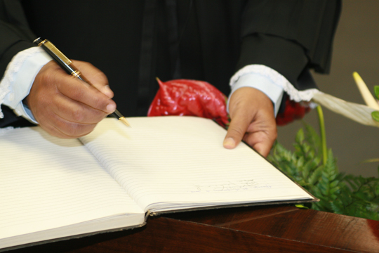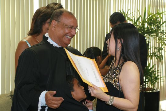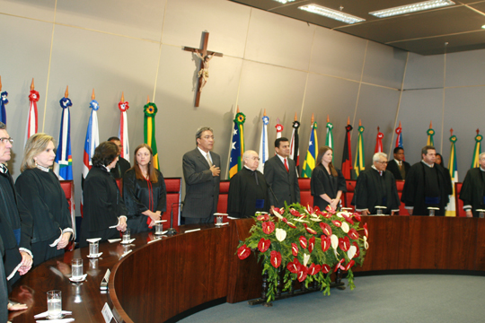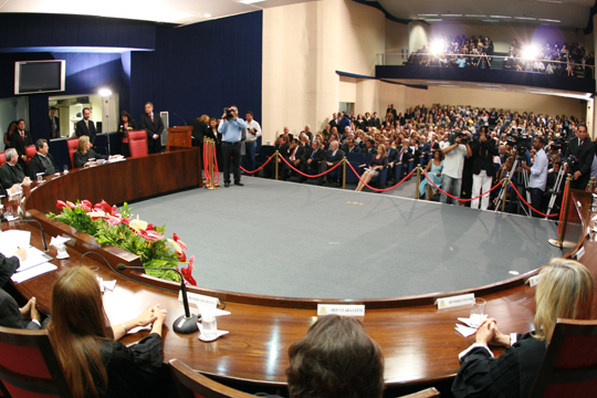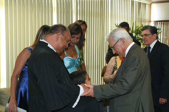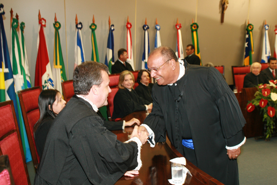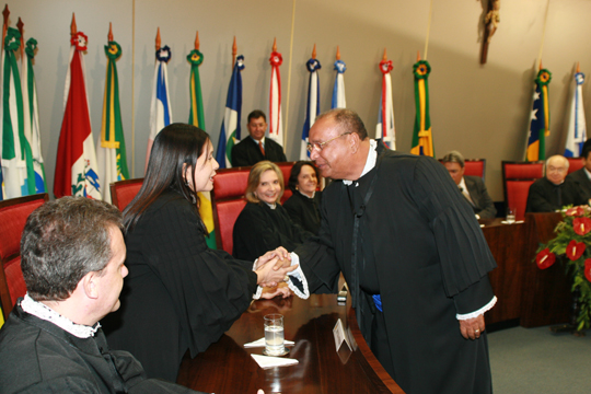 Depois do juramento, a primeira saudação foi realizada pela Desembargadora Aparecida Gama, empossada na semana passada. O exercício da magistratura exige vocação e dimensão ampla do conhecimento. Espera-se do Juiz uma visão abrangente do mundo, tornando-o mais sensível e humano. Vossa excelência é dotado dessas qualidades. Tem a experiência dos que chegaram ao Tribunal com o passo firme da antiguidade, falou a Desembargadora.
