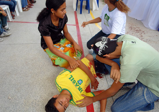 Um grupo de jovens da Escola Estadual Josefina Leite Campos, da cidade de Pedrinhas, apresentou uma peça teatral sobre o uso de drogas lícita e ilícita e a geração de violência no ambiente familiar. Além disso, aos participantes do seminário foi distribuída uma cartilha do Menino Maluquinho com explicações sobre o ECA.