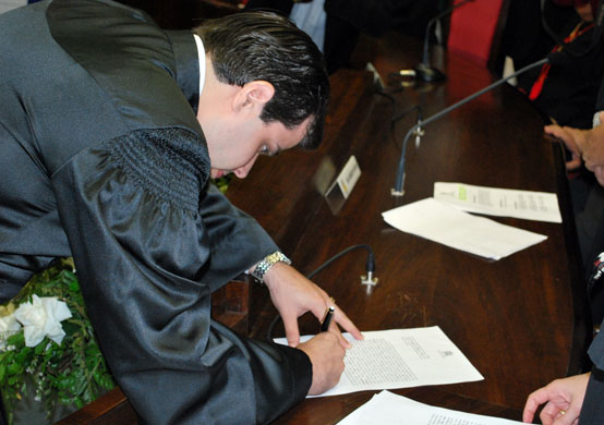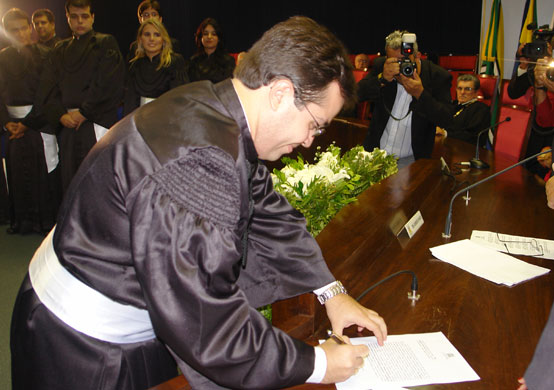 Depois do juramento e da assinatura do termo de posse, os Juízes Substitutos foram saudados pelo Presidente da Associação dos Magistrados de Sergipe (Amase), Paulo César Cavalcante Barreto. Trabalhem com afinco, decidam com honradez e julguem com equilíbrio para que possam conseguir um nome, que é o título maior que se pode ter, construído com muito trabalho, orientou.