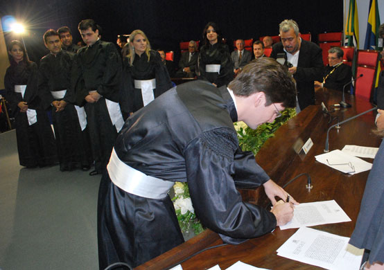 Aconteceu no final da tarde de hoje, dia 02, a posse de 15 novos Juízes Substitutos, aprovados em concurso realizado no ano passado. A Corregedora Geral de Justiça, Desembargadora Aparecida Gama, disse que a expectativa a respeito do trabalho que irão prestar ao Poder Judiciário é a melhor possível, já que todos passaram por uma rigorosa seleção, mostrando estarem bem preparados para o cargo.