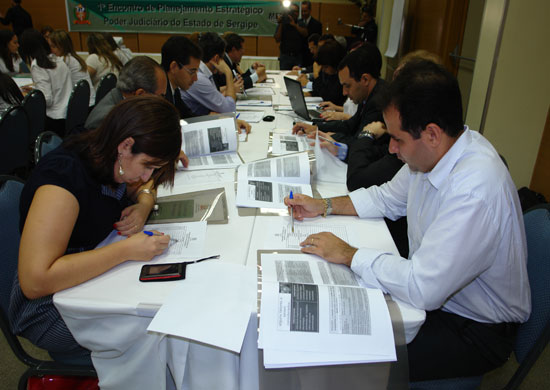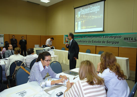 Ao final será apresentada uma minuta pré-aprovada para o Planejamento Estratégico do Tribunal de Justiça. O evento conta com a participação de desembargadores, juízes, servidores de diversas áreas do TJSE e de representantes do Sindicato dos Servidores do Poder Judiciário SINDSERJ.