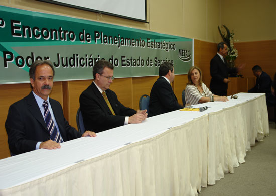 O encontro foi aberto pelo Presidente do TJSE, Desembargador Roberto Porto, que informou ser um compromisso pessoal o cumprimento da Meta 01. Ele também ressaltou que das 10 metas propostas pela Resolução 70 do CNJ 08 já foram cumpridas pelo Poder Judiciário Sergipano. Esse encontro é um marco divisor na consolidação de novas práticas no Poder Judiciário Sergipano, destacou o Presidente.