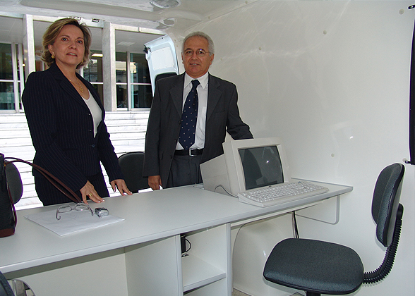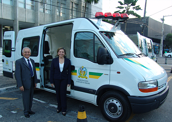 A presidente do TJSE, desa. Marilza Maynard Salgado de Carvalho, entregou à sociedade no fim da tarde de ontem, 8, duas novas viaturas para o atendimento da Justiça Volante. Durante a visita de reconhecimento dos veículos, na frente do Palácio da Justiça, a presidente foi acompanhada pelo procurador-geral de Justiça, dr. Luiz Valter Ribeiro Rosário, tendo também a presença de vários juízes de direito.