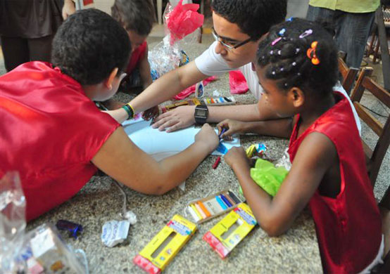 "Essa troca de informações e acesso facilita nosso trabalho", destacou Margarida, que ficou orgulhosa ao ver que as crianças sabiam todas as músicas. ?Eles vão todos os sábados para a igreja. Os maiores já fazem catecismo e os pequenos participam da missa?, completou. Os alunos do Colégio Saint Louis mais uma vez abraçaram a causa e participaram das ceias. "É gratificante ver o sorriso no rosto das crianças. Convido a todos para serem voluntários porque a sensação é maravilhosa", destacou Rebeca Meira, de 16 anos.