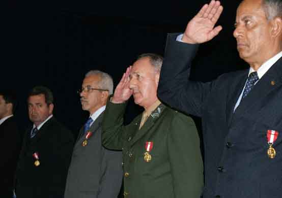 O Presidente do Tribunal de Justiça de Sergipe (TJSE), Desembargador Roberto Porto, o Vice-presidente Cezário Siqueira Neto, a Desembargadora Clara Leite, o Desembargador José Alves e o Secretário de Planejamento e Administração, Coronel aposentado do Exército, Joseluci Prudente, foram condecorados com a Medalha Alferes Tiradentes na última terça-feira, dia 20.