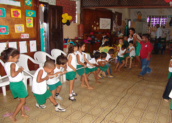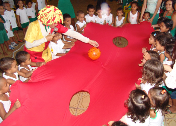 Uma animadora fantasiada de boneca Emília liderou várias brincadeiras, que tiveram participação assídua dos pequeninos. Patinete, pula-pula, passa-bola, basquete, bambolê, cabo-de-guerra e outras modalidades movimentaram bastante a criançada.