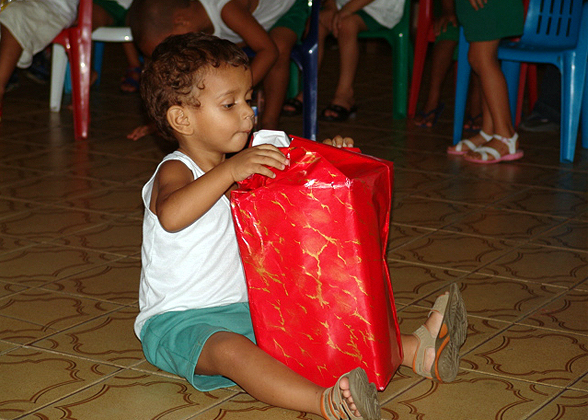Cada presente entregue, revelava mais um rosto feliz. Houve quem precisasse de ajuda para abrir a surpresa enviada pelos padrinhos. Alguns presentes chegavam a ser maiores que os próprios homenageados.