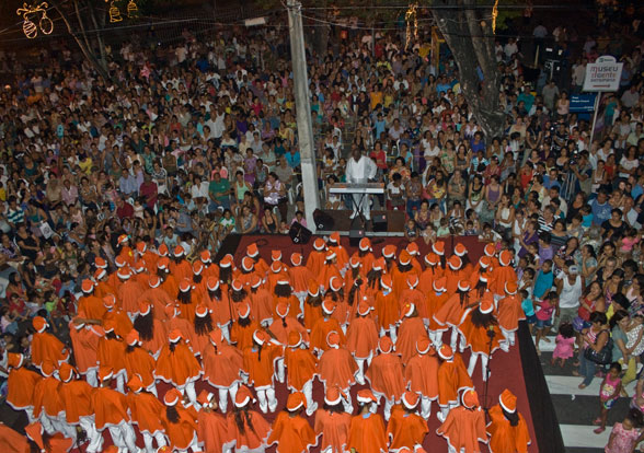 Cento e sessenta e cinco vozes de crianças e adolescentes, de 6 a 17 anos, entoaram músicas natalinas bastante conhecidas do público. "Gosto muito desse coral. Eles cantam bonito. É a quarta vez que eu venho nesta festa de Natal", contou Carlos Roberto Oliveira, de 11 anos, que foi ao Memorial acompanhado dos pais, uma tia e a avó.