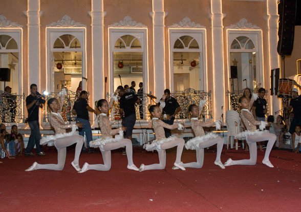Senhoras, crianças, famílias inteiras, gente que acabava de sair do trabalho, servidores do Tribunal de Justiça de Sergipe, aos poucos, ocuparam a frente do Memorial do Judiciário, na noite de hoje, dia 2, para prestigiar uma festa de Natal repleta de sons e luzes. A primeira atração que subiu ao palco e ocupou os janelões iluminados do prédio centenário foram os Canarinhos de Sergipe, seguidos do Balé Dom Távora e Orquestra Sanfônica de Aracaju.
