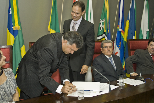 Aconteceu no final da tarde de hoje, dia 8, no auditório do Palácio da Justiça, no Centro de Aracaju, a posse da nova diretoria da Associação dos Magistrados de Sergipe (Amase) para o biênio 2012-2013. O Juiz Paulo César Cavalcante Macêdo transferiu a Presidência para o colega Gustavo Adolfo Plech Pereira. Para o novo Presidente, a magistratura vive um momento difícil e, por isso, deve estar cada vez mais unida.