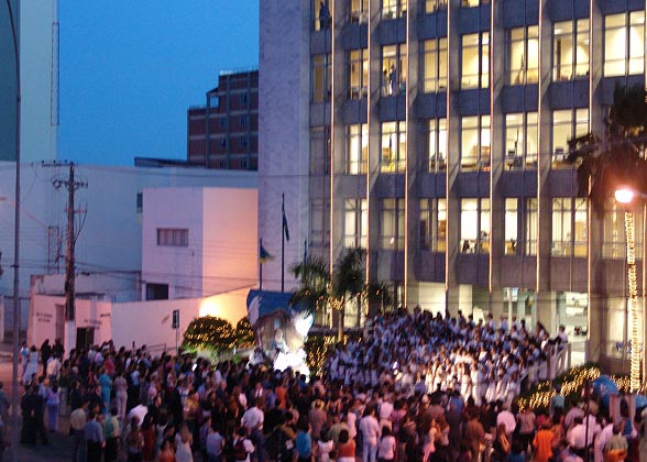 Neste mês, os festejos natalinos no TJSE começaram a ser comemorados no dia 6 com a apresentação musical de crianças no Fórum Gumersindo Bessa. No dia seguinte, a Cantata Príncipe da Paz emocionou o público, em frente ao Palácio da Justiça, com o seu repertório e a formação de um presépio vivo. A iluminação especial montada na fachada do Palácio e do Centro Administrativo ajudou a compor o cenário da apresentação que terminou com uma chuva de papel prateado.