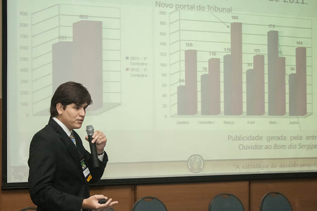 Na sequência do encontro, também aconteceu a apresentação de alguns projetos estratégicos. O Desembargador Edson Ulisses de Melo falou sobre a Ouvidoria, que em 2011 realizou 1.281 atendimentos. Já o servidor Alessandro Vasconcelos falou sobre os projetos de construção e reforma de fóruns. Das 89 unidades jurisdicionais do TJSE, 64% delas já têm projetos de acessibilidade concluídos, ou seja, com rampas para cadeirantes, piso tátil para deficientes visuais e banheiros adaptados.