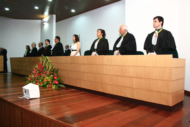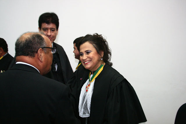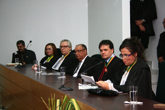 O Presidente do Tribunal de Justiça de Sergipe (TJSE), Des. Osório de Araújo Ramos Filho, participou na sexta-feira, 14.12, da posse da Desª Rita de Cássia Pinheiro Oliveira na presidência do Tribunal Regional do Trabalho de Sergipe (20ª Região). A posse aconteceu no auditório do Complexo da Justiça do Trabalho de Sergipe e reuniu representantes do Judiciário, Executivo e Legislativo, além de amigos e familiares da empossada. A mais nova presidente dividirá a gestão do biênio 2012-2014 com a Desª Maria das Graças Monteiro Melo, que foi empossada como vice-presidente. Pela primeira vez na história da Justiça do Trabalho em Sergipe, duas mulheres estarão juntas à frente da instituição.
