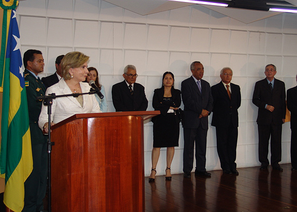 A governadora, em exercício, encerrou seu pronunciamento tranqüilizando o titular: Viaje em paz porque sou um pouco parecida com o senhor. Amo a minha terra e tudo faço por ela. Farei o possível para orgulhá-lo e ao povo sergipano.