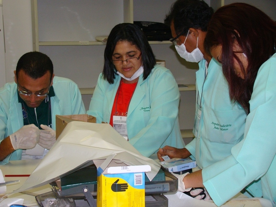 Terminou nesta segunda, 21, a Oficina de Higienização e Conservação de Documentos, realizada pelo Arquivo Geral do Judiciário, através da Divisão de Memória Judiciária. A iniciativa atendeu à solicitação da Empresa Municipal de Serviços Urbanos de Aracaju – Emsurb, que enviou oito técnicos. As atividades, com carga horária de 20 horas e direito a certificado, foram iniciadas no último dia 14, com uma visita às dependências do Arquivo.