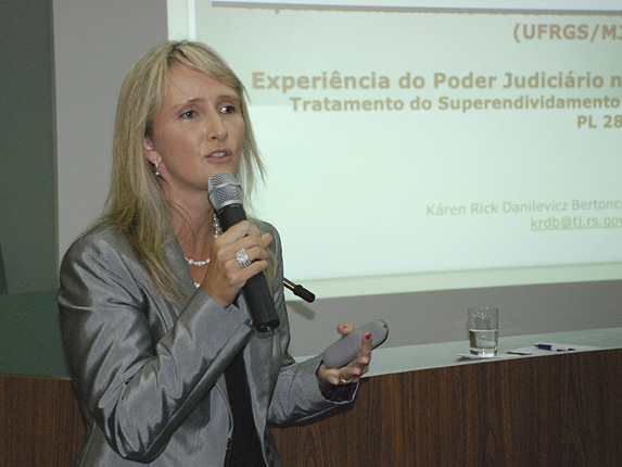 De acordo com a advogada, o Brasilcon está estudando modelos e soluções que vêm do Direito Comparado, que permitem o tratamento em bloco de credores e devedores acompanhados pelo Judiciário. Este projeto piloto teve início no Rio Grande do Sul, com as Magistradas Clarissa Costa de Lima e Káren Rick Danilevicz Bertoncello, que também participaram da primeira noite da IV Jornada. “Agora estamos tentando, com o Projeto de Lei nº 283/2012, no Senado Federal, que este seja um modo de prevenção e tratamento de superendividamento em todo o país”, revelou Cláudia Lima.