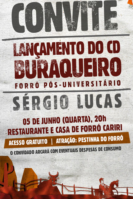O CD Buraqueiro do Juiz de Direito Sérgio Lucas, da 3ª Vara Privativa de Assistência Judiciária de Aracaju, será lançado no dia 05/06, às 20 h, no Restaurante e Casa de Forró Cariri. Para os adquirentes do CD o acesso é gratuito e as primeiras mil vendagens serão revertidas para o Fundo Municipal dos Direitos da Criança e do Adolescente de Aracaju, sendo que a partir milésima primeira unidade será revertido 50% do valor.