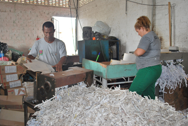 Chegando à Care, o papel passa por um processo de classificação de cores. “Depois, trituramos o material para reciclagem. Transformamos em fardos e encaminhamos para a indústria, onde são transformados em diversos produtos, como papel higiênico e papel ofício. Assim, o papel é integrado, novamente, na cadeia produtiva sem derrubar novas árvores”, disse Adriano, acrescentando que um quilo de papelão é vendido a R$0,20 e o quilo do papel branco a R$ 0,55.