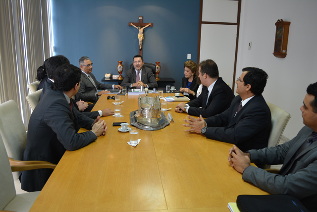 O Presidente do Tribunal de Justiça de Sergipe (TJSE), em exercício, Des. Edson Ulisses de Melo, juntamente com a Corregedora Geral da Justiça, Desa. Suzana Carvalho Oliveira, receberam, nesta quinta-feira, 10.10, a visita de uma comitiva da OAB/SE, coordenada pelo Presidente, Carlos Augusto Monteiro Nascimento. O encontro, que contou também com a participação do Juiz Auxiliar da Presidência, Marcelo Campos; dos Juízes Corregedores, Francisco Alves Jr. e Anuska Rocha; e da Secretária de Tecnologia, Denise Martins Moura, teve como pauta a ampliação do estacionamento para advogados no Fórum Gumersindo Bessa, a organização da sustentação oral nas Câmaras, a materialização dos processos eletrônicos pelos advogados e sobre as varas de família na Comarca de Aracaju.