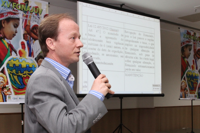 A Juíza da 17ª Vara Cível da Comarca de Aracaju, Aline Cândido, fez parte da mesa na revisão dos enunciados do Fonajuv, durante a manhã, apresentado pelo Juiz de Direito e Coordenador da Infância e Juventude do TJRO, Marcelo Tramontini. Cada participante pôde votar, a partir da justificativa apresentada pela manutenção, alteração ou supressão dos enunciados. Em seguida, o Juiz da Comarca de Capela, Gaspar Feitosa, compôs a mesa na aprovação do Regimento Interno do Fonajuv.