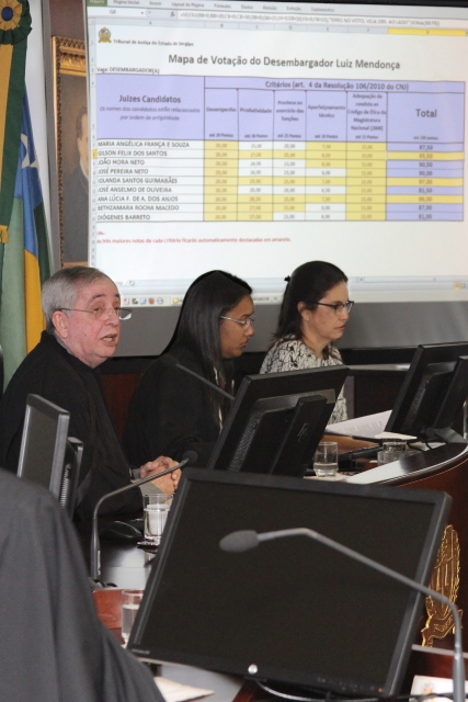 Cada um dos 10 desembargadores votantes apresentou notas nos critérios de desempenho (20 pontos), produtividade (30), presteza no exercício das funções (25), aperfeiçoamento técnico (10) e adequação da conduta ao Código de Ética da Magistratura Nacional (15), que juntas somaram 100 pontos. Nove juízes habilitados apresentaram candidatura: Maria Angélica França e Souza, Gilson Félix dos Santos, João Hora Neto, José Pereira Neto, José Anselmo de Oliveira, Diógenes Barreto, Ana Lúcia Freire dos Anjos, Bethzamara Rocha Macedo e a escolhida Iolanda Santos Guimarães.
