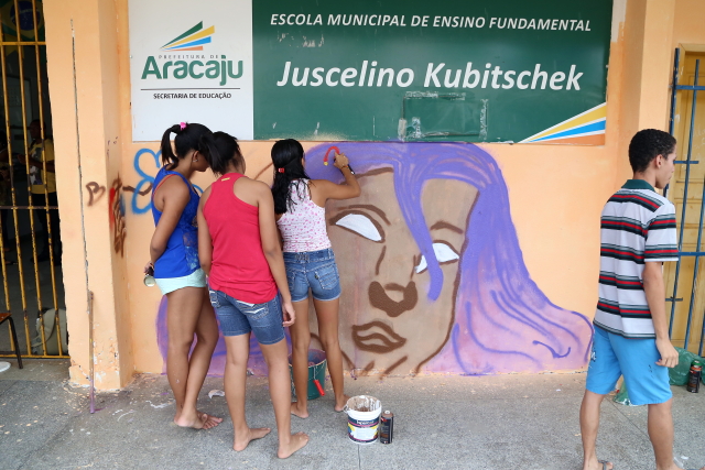 A Coordenadoria da Mulher do Tribunal de Justiça de Sergipe encerrou, neste sábado, dia 14, na Escola Municipal de Ensino Fundamental Juscelino Kubitschek, o Projeto Grafitagem nas Escolas, quando os alunos e os monitores grafitaram os muros da instituição de ensino sobre a temática “Violência doméstica contra a mulher”. O objetivo do projeto foi provocar uma mudança de cultura em relação ao tema “Violência contra a mulher”, voltado para um público com visão de mundo e de caráter sendo formado.