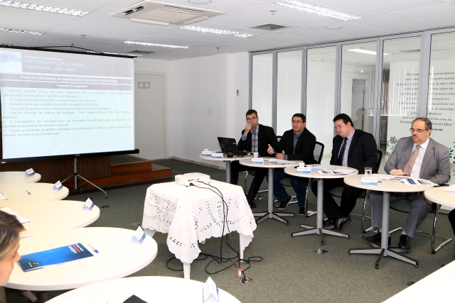 Durante a reunião, a Diretoria de Comunicação apresentou o Plano De Comunicação da Estratégia do PE. A Diretoria de Modernização Judiciária também fez um balanço do Projeto de Gestão e Otimização das Rotinas de Trabalho da Área Judicial.