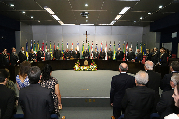 Os Desembargadores Luiz Mendonça, na Presidência, José dos Anjos, na Vice-Presidência e Ricardo Múcio, na Corregedoria Geral de Justiça, compõem a nova Mesa Diretora do Tribunal de Justiça de Sergipe, que conduzirá o Judiciário estadual até fevereiro de 2017. A solenidade de posse aconteceu no final da tarde de hoje, dia 05/02, no auditório do Palácio da Justiça, que recebeu, além de servidores, magistrados, amigos e familiares dos empossados, autoridades nacionais, a exemplo do Presidente do Superior Tribunal de Justiça, Ministro Francisco Cândido de Melo Falcão.