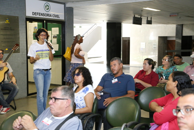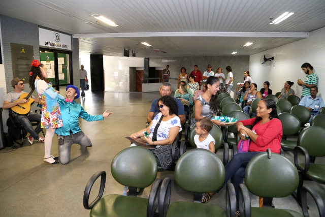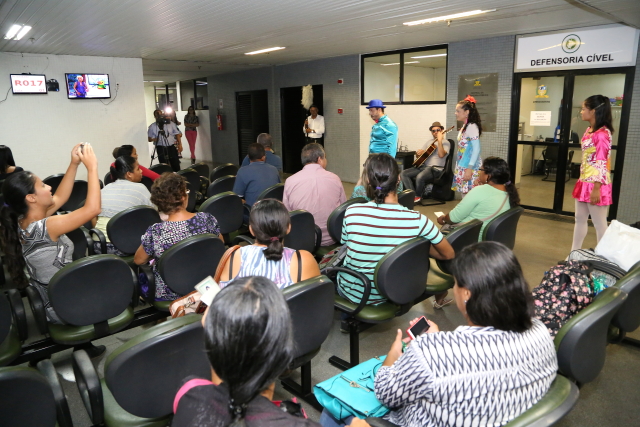 A apresentação teatral “Uma Flor de Mulher” também foi levada para as pessoas que aguardavam o atendimento na Defensoria Pública e no Juizado de Violência Doméstica e Familiar contra a Mulher. Na estória, a personagem Maria Flor, interpretada pela técnica judiciária Alessandra Teófilo, passa pela experiência de um casamento violento, em que o agressor é o próprio marido. A encenação é uma forma lúdica de conscientizar a população sobre a importância do combate à violência doméstica. As pessoas se divertiram e também se emocionaram com a apresentação.