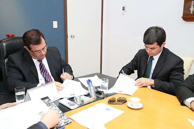 Participaram também do encontro para a assinatura do convênio, o Juiz Federal, Edmilson Pimenta e o Diretor-Geral do TRT20, Tadeu Nascimento.