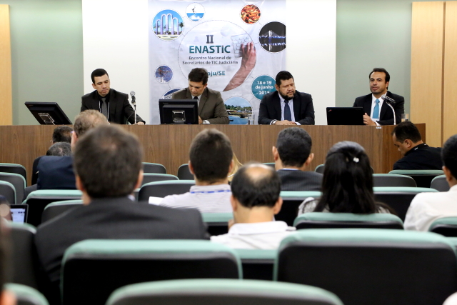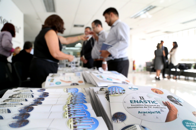 Oitenta representantes de 15 Tribunais de Justiça estaduais estão em Aracaju participando do II Encontro Nacional de Secretários de Tecnologia da Informação e Comunicação Judiciária (Enastic). O evento teve início na tarde de hoje, 18/06, e prossegue até amanhã, no Tribunal de Justiça de Sergipe. O objetivo é compartilhar novas tecnologias, discutir ideias e aprimorar a tecnologia da informação no âmbito judicário. O Presidente em exercício do TJSE, Desembargador José dos Anjos, participou da abertura e disse que o evento propicia uma rica troca de experiências.