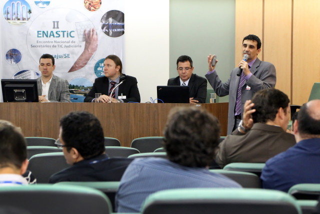 Foi encerrado no início da noite de hoje, 19/06, o II Encontro Nacional de Secretários de Tecnologia da Informação e Comunicação Judiciária (Enastic), sediado pelo Tribunal de Justiça de Sergipe. Os cerca de 80 participantes – de 15 Tribunais estaduais, mais Supremo Tribunal Federal (STF), Superior Tribunal de Justiça (STJ) e outros órgãos da Justiça em Sergipe, como Justiça Federal e do Trabalho – discutiram soluções para problemas em comum, inovações tecnológicas e o uso de ferramentas que visem dar maior agilidade à tramitação dos processos.