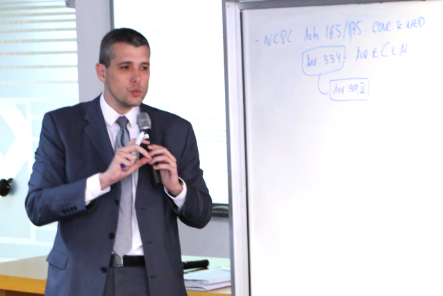 O curso contou com uma exposição teórica sobre a conciliação e a mediação repassando a sua evolução desde o ano de 2010, a partir da Resolução nº 125 do CNJ. O palestrante também abordou o texto do novo Código de Processo Civil, confrontando-o com a nova Lei de Mediação (Lei 13.140/2015), além de questões práticas e casos concretos. “A mediação e da conciliação são temas que o CNJ já tem manifestado uma preocupação muito grande, temas que estão no novo CPC, que entrará em vigor em março do ano que vem e, além disso, tivemos a sanção da Lei 13.140/2015, Lei de Mediação. Não se trata apenas para reduzir o número de processos, porque a redução não é um efeito primário, mas um efeito secundário. O principal objetivo é pacificar os conflitos, para que as pessoas que recorrem ao Judiciário não saiam apenas com uma sentença em mãos, mas com a resolução concreta de seus problemas”, destacou o Promotor de Justiça Humberto Dalla Bernardina de Pinho.