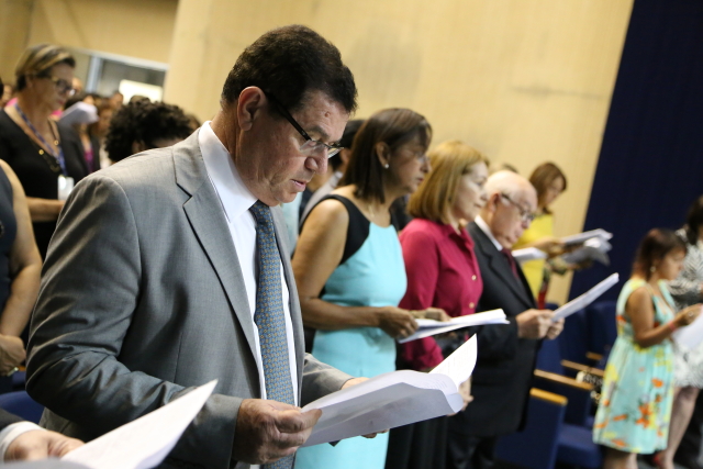 Em nome da Presidência do TJSE, o Des. Osório de Araújo Ramos Filho agradeceu a oportunidade do Judiciário receber a imagem de Nossa Senhora de Fátima peregrina. “É um momento muito importante, sublime e que vai ficar registrado nos anais desta Casa a presença santificadora de Nossa Senhora de Fátima. Pedimos a sua proteção sempre e que a Mãe de Jesus estenda o seu manto sobre todos os que fazem o Judiciário e suas famílias”, agradeceu o magistrado.