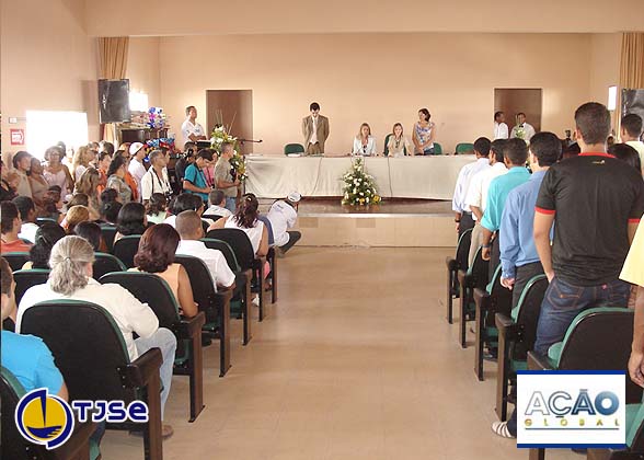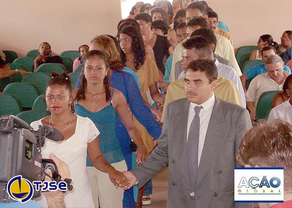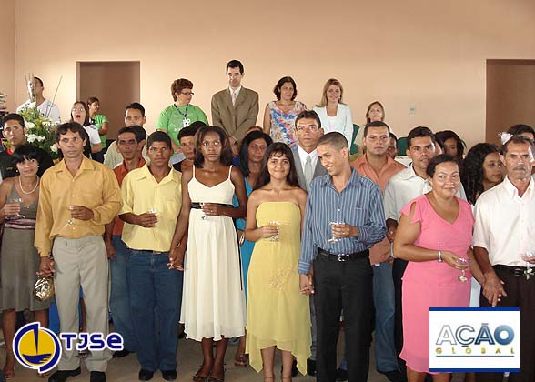 Pela manhã, 23 casais disseram sim no casamento comunitário realizado pela juíza Lívia Santos Ribeiro, do 4ª Juizado Especial Cível da capital. Ao som de música romântica, os noivos entraram no auditório decorado com flores. Após a cerimônia, até bolos de casamento foram entregues aos noivos, além de vários brindes, em especial uma televisão, sorteada pelo TJSE, sendo ganhadores Luiz Cláudio Correia da Silva e Elga Maria de Oliveira Silva.