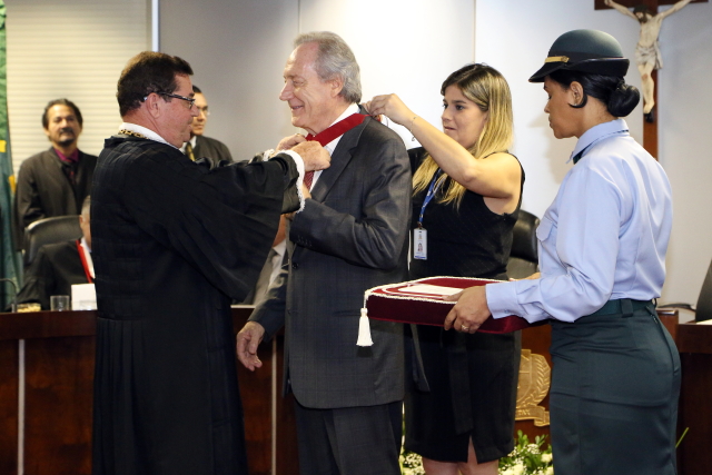 O TJSE concedeu ao Ministro o Colar do Mérito Judiciário, quarta e última homenagem da tarde. Somente pessoas que tenham prestados serviços importantes para a atividade judicante ou para a administração pública recebem o colar.
