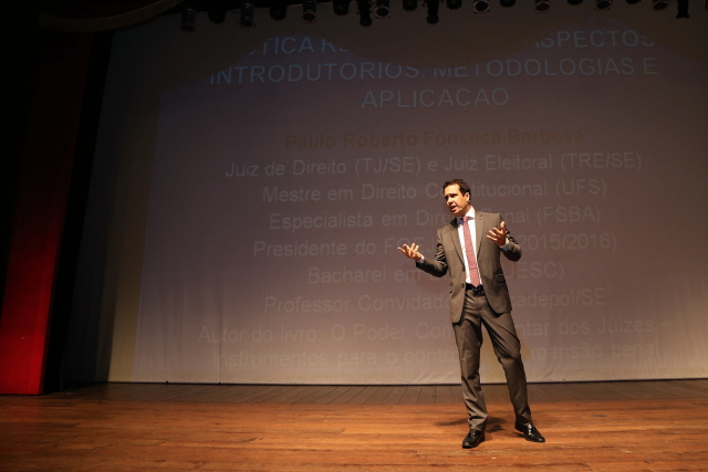 O evento foi dividido em duas partes, no primeiro horário o juiz, que também é Presidente do Fórum Estadual de Juízes da Infância e Juventude de Sergipe, fez uma contextualização do Direito Penal e apresentou dados de como o sistema tem se mostrado deficiente. “O Direito Penal não ressocializa, não reduz a criminalidade. O que acontece é justamente o contrário, a introdução do cidadão no sistema carcerário implica em multiplicação, em reincidência”, explicou Paulo Roberto, que finalizou o horário fazendo uma introdução dos fundamentos da Justiça Restaurativa, que traz uma possibilidade de mudança de foco, não se concentrando na punição, mas na responsabilização respeitosa do ofensor, através de uma participação da vitima e da comunidade, em um processo que restaura não só os envolvidos, mas relacionamentos, sentimentos e necessidades.