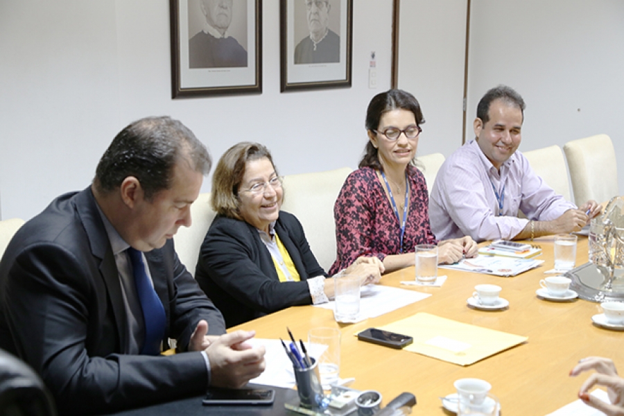 Participaram também da reunião, a Juíza Auxiliar da Presidência Dauquíria Ferreira; o Juiz Corregedor, Marcelo Campos, além de servidores da área de Planejamento e Finanças.