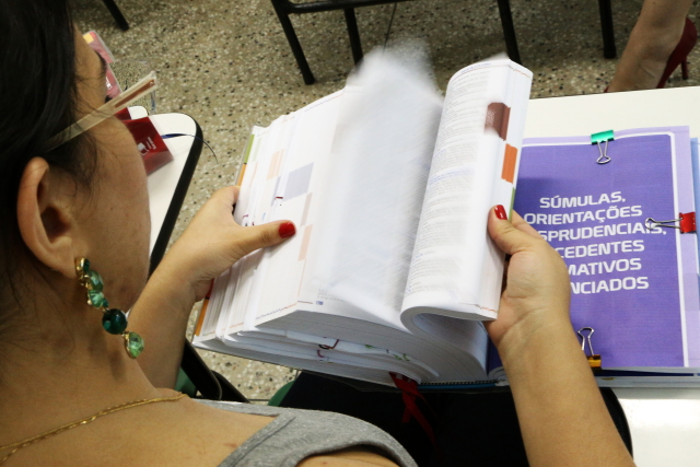 Para esta segunda fase, a comissão do concurso designou 33 Juízes para fazerem a vistoria do material de consulta utilizado pelos candidatos. “Só é permitido ao candidato utilizar a legislação sem qualquer comentário. Os Códigos, via de regra, têm exposição de motivos, o que não pode ser utilizado, ementas e súmulas também não. Então, essa fiscalização consta no edital de abertura do concurso e é de suma importância para permitir a igualdade entre todos candidatos”, explicou Bethzamara Rocha.