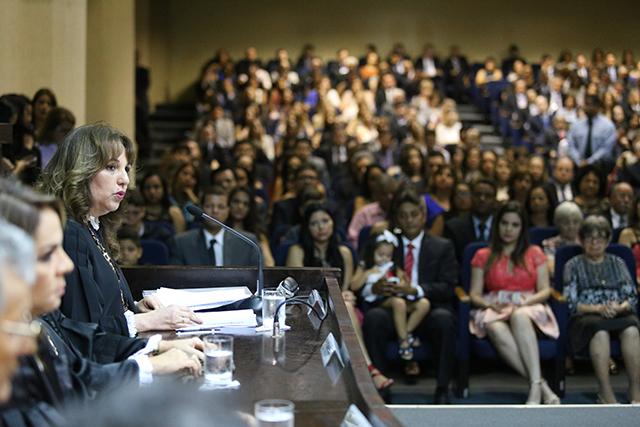 Logo em seguida, a nova Desembargadora proferiu um discurso no qual lembrou de inúmeros magistrados que serviram de inspiração ao longo da carreira dela e contou que o interesse pelo Direito surgiu durante um júri simulado em uma aula de História, ainda no ensino médio. “Desde então persegui esse sonho”, revelou, lembrando que foi da primeira turma de magistrados sergipanos empossados após a Constituição de 1988. Também durante o discurso, ela agradeceu à família e aos servidores do TJ que com ela trabalharam por compreenderem o fato dela jamais deixar passar um processo sem movimentação por mais de 30 dias.