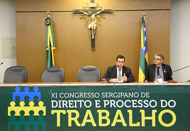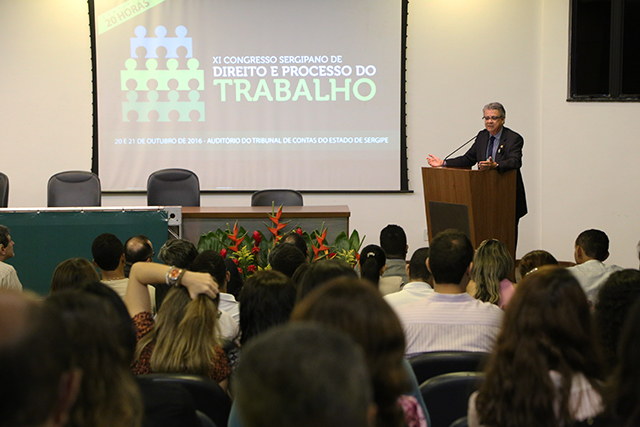 Teve início hoje, 20/10, e prossegue até amanhã, o XI Congresso Sergipano de Direito e Processo do Trabalho, realizado no auditório do Tribunal de Contas do Estado de Sergipe. O Presidente do Tribunal de Justiça de Sergipe, Desembargador Luiz Mendonça, presidiu a palestra ‘O Juiz Gestor e o processo judicial eletrônico’, ministrada pelo Desembargador Federal de Tribunal Regional do Trabalho Gustavo Tadeu Alkmim, também Conselheiro do Conselho Nacional de Justiça (CNJ).