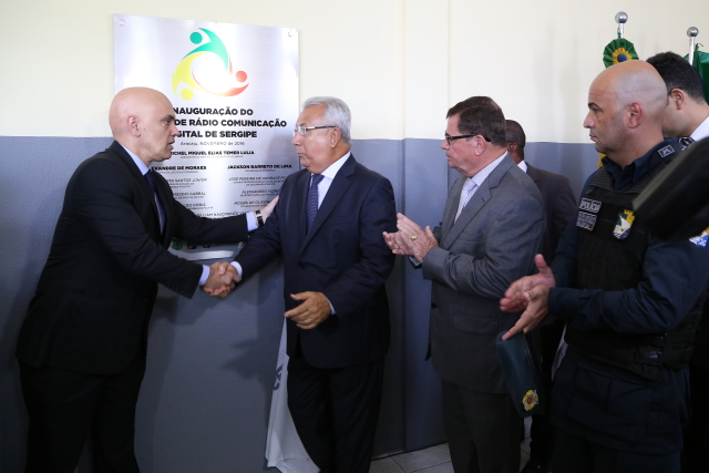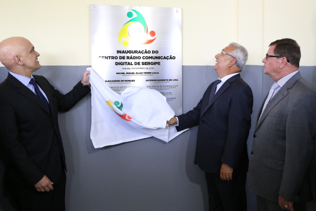 O Presidente do Tribunal de Justiça de Sergipe, Desembargador Luiz Mendonça participou na manhã desta segunda-feira, dia 07, da inauguração do Centro de Radiocomunicação Digital de Sergipe, localizado no Centro Integrado de Operações de Segurança Pública – Ciosp, em Aracaju. A cerimônia foi comandada pelo Governador de Sergipe, Jackson Barreto e o pelo Ministro da Justiça, Alexandre Moraes. O novo sistema é um investimento no valor de R$ 26.823.356,52 e foi implantado por meio de convênio, a partir do Programa Brasil Mais Seguro, desenvolvido pela Secretaria Nacional de Segurança Pública (Senasp), do Ministério da Justiça.