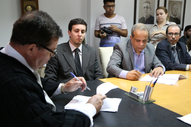 O Tribunal de Justiça de Sergipe (TJSE) firmou acordo de cooperação com a Procuradoria Geral e Secretaria de Saúde do Município de Aracaju e também com a Procuradoria Geral do Estado e Secretaria de Estado da Saúde visando a instituição de um Núcleo de Assessoramento Técnico ao Judiciário (NAT/JUD) para demandas ligadas ao Sistema Único de Saúde (SUS). A assinatura do Termo de Cooperação Técnica aconteceu hoje, 30/11, na Presidência do TJSE.