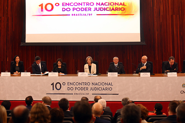 O 10º Encontro Nacional do Poder Judiciário reunirá até amanhã, 6/12, na sede do TSE, Presidentes e Corregedores dos Tribunais e Conselhos da Justiça, membros das áreas de governança e gestão estratégica do Poder Judiciário. A décima edição do evento promovido pelo CNJ tem como objetivos aprovar as metas nacionais a serem perseguidas pelos órgãos da Justiça em 2017 e tornar público o desempenho parcial dos tribunais no cumprimento das metas fixadas para este ano.