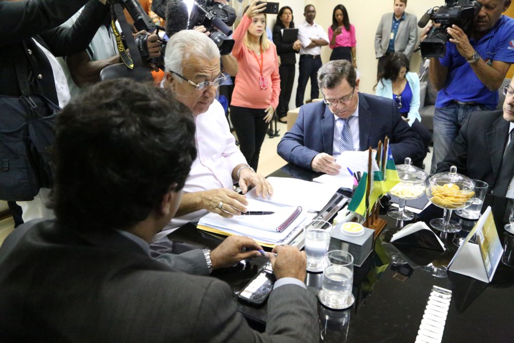 O Presidente do Tribunal de Justiça de Sergipe, Desembargador Luiz Mendonça, e o governador do Estado, Jackson Barreto, assinaram na manhã de hoje, 20/01, os termos de permissão de uso dos fóruns distritais desativados dos municípios de Ilha das Flores, Tomar do Geru, Rosário do Catete, Moita Bonita, Nossa Senhora Aparecida, Muribeca, Santa Luzia do Itanhy e Brejo Grande. Os prédios serão utilizados pela Secretaria de Segurança Pública (SSP). A solenidade aconteceu no Palácio dos Despachos.