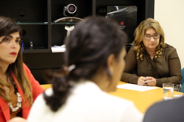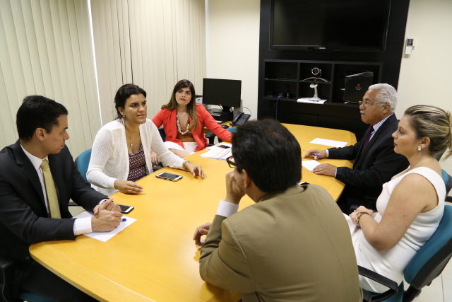 Participam também da reunião, o Juiz de Direito Leonardo Almeida; o Juiz Corregedor, Daniel Vasconcelos; a Juíza titular da 17ª Vara Cível, Aline Cândido Costa; a Promotora de Justiça do Centro de Apoio Operacional da Infância e Adolescência, Mirian Tereza; e a Defensora Pública, Karine Mara Neri.