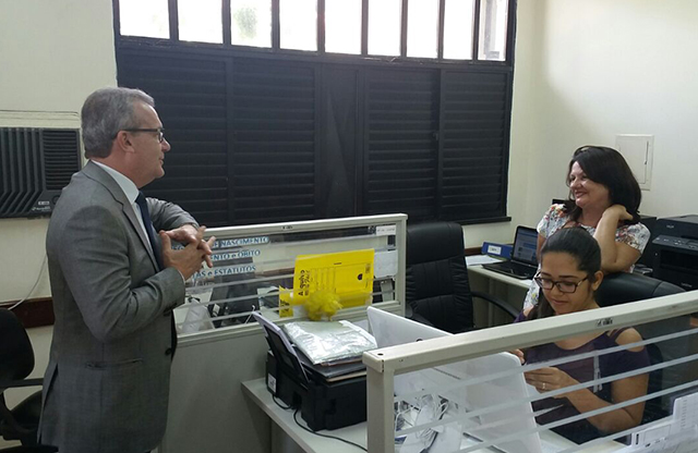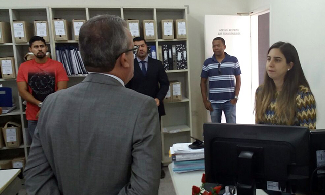 A terceira parada foi em Arauá, onde o Juiz Luiz Eduardo Araújo Portela fez a apresentação sobre o funcionamento do fórum. Lá, o Desembargador também encontrou pessoas com quem já trabalhou, como os servidores Firmo dos Santos Fagundes e Filenila Guimarães.